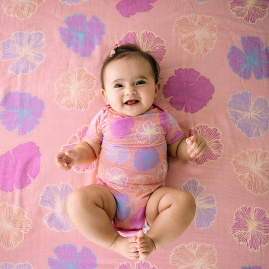 Hibiscus Kiss Muslin Baby Swaddle Blanket