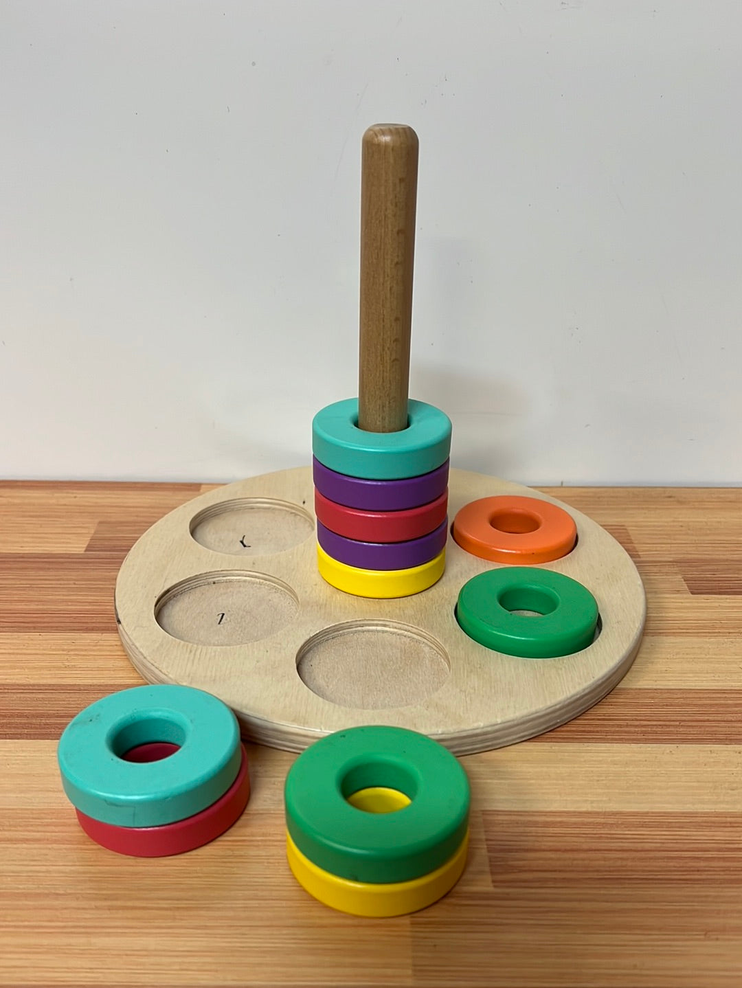 Wooden, a few pen marks to wooden base.