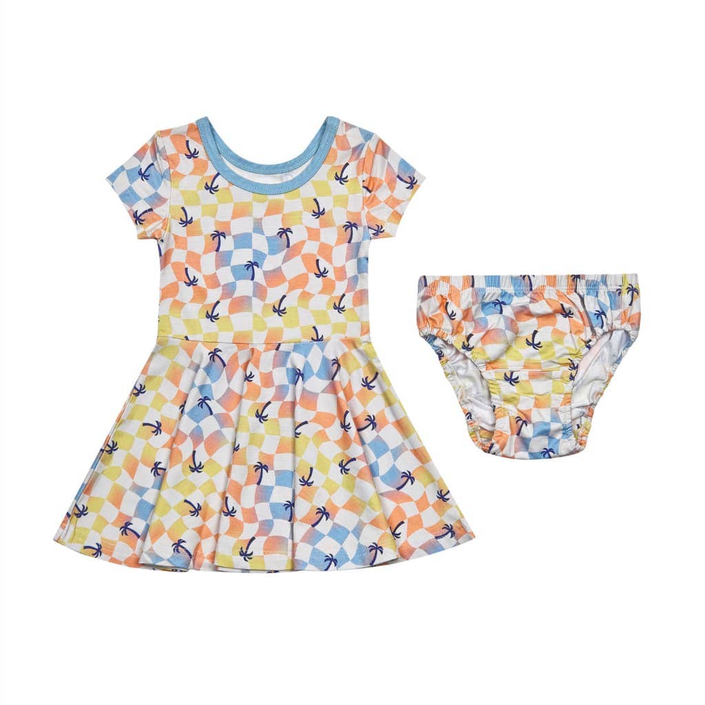 Sunset Checker Bamboo T-Shirt Dress: 2T