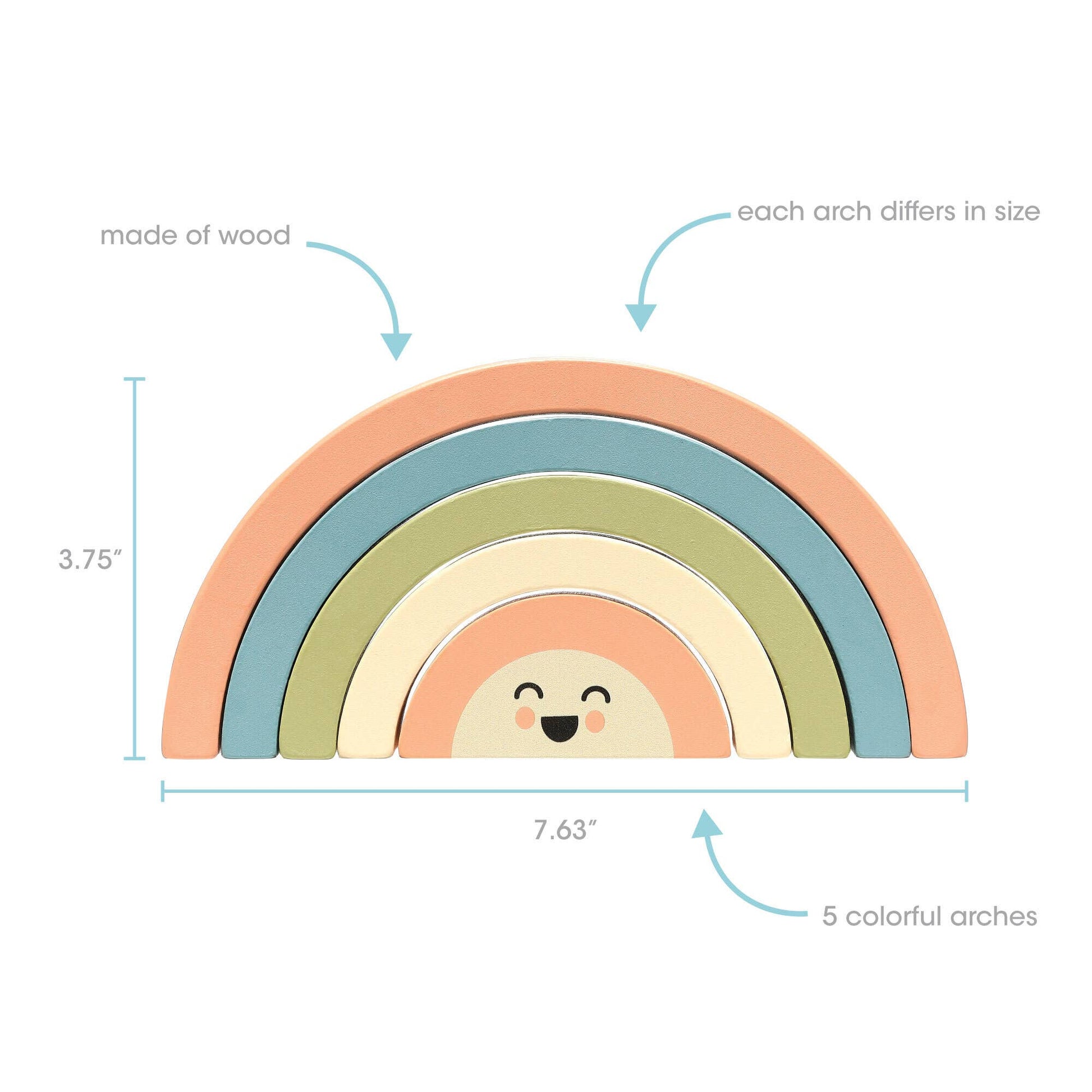 • This fun staking rainbow toy will help parents and their little ones create special memories they will share and love for years to come! And when playtime is over, this wooden rainbow makes the perfect nursery décor accessory!